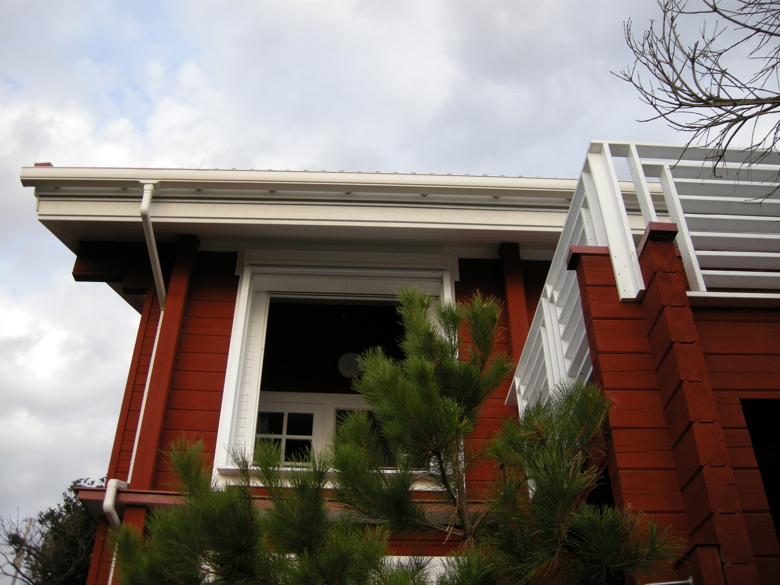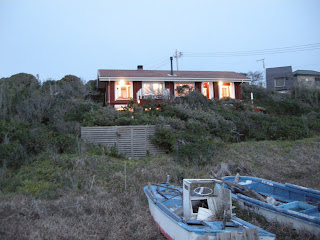 築9年 海辺のログハウス2010年12月1日 築9年のログハウスが再塗装を終えたので、久しぶりに撮影に行ってきました。ご覧のようにログハウスの前は海岸というすばらしいロケーションです。その分ログハウスにとっては過酷な立地条件ですが、再塗装できれいになっていました。海に面して全く屋根のかかっていないバルコニーデッキ(海見台)があり、もともと、傷んだらそこだけ取り替え覚悟の設計なのですが、今のところ保っております。
