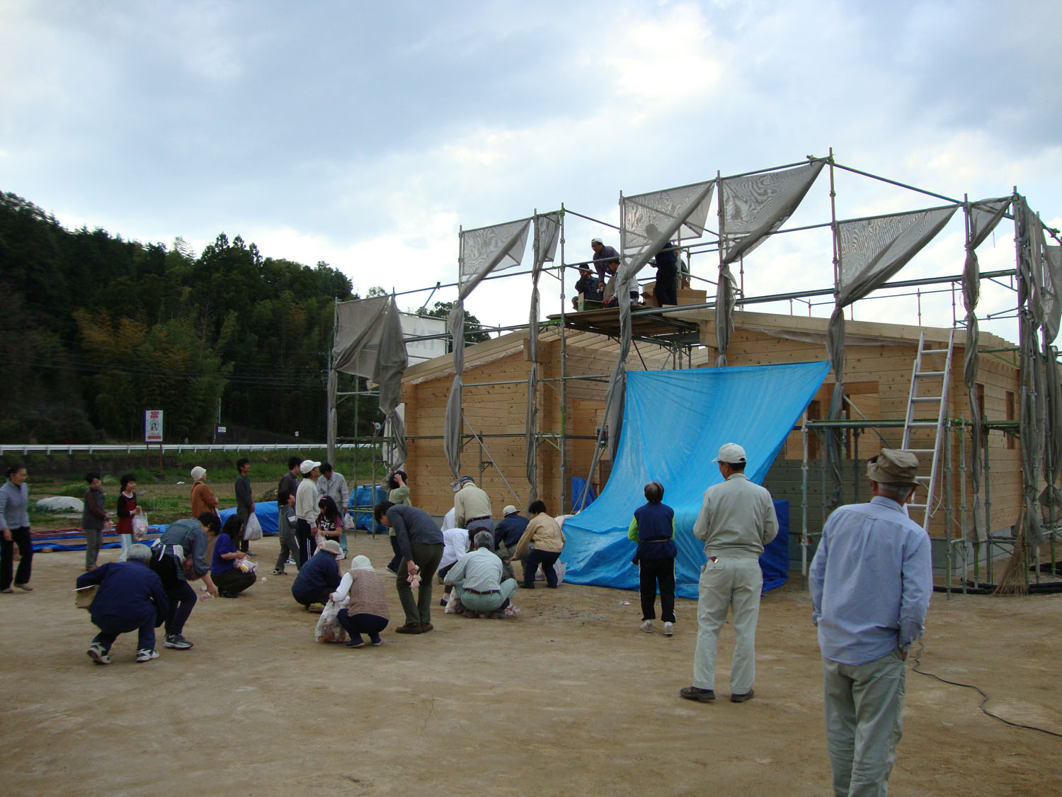 岡山の桧ログ、上棟!2010年5月6日 GW明けの今日は全国から物件の写真やイベントの写真が届いてます。まずは岡山の桧ログハウスの上棟祭の様子から!片流れ屋根のモダンなデザインと桧がどうマッチするか楽しみです!